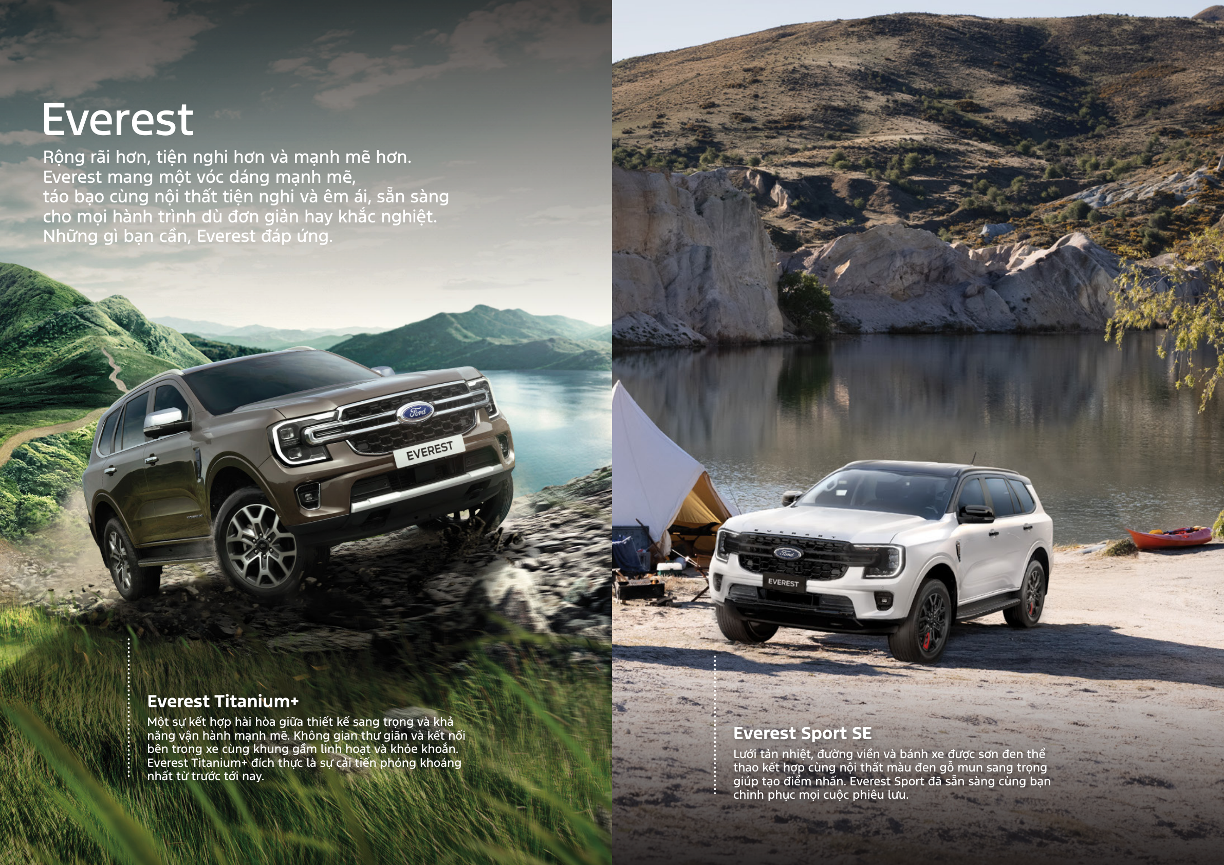 Everest mang một vóc dáng mạnh mẽ, táo bạo cùng nội thất tiện nghi và êm ái, sẵn sàng cho mọi hành trình dù đơn giản hay khắc nghiệt.