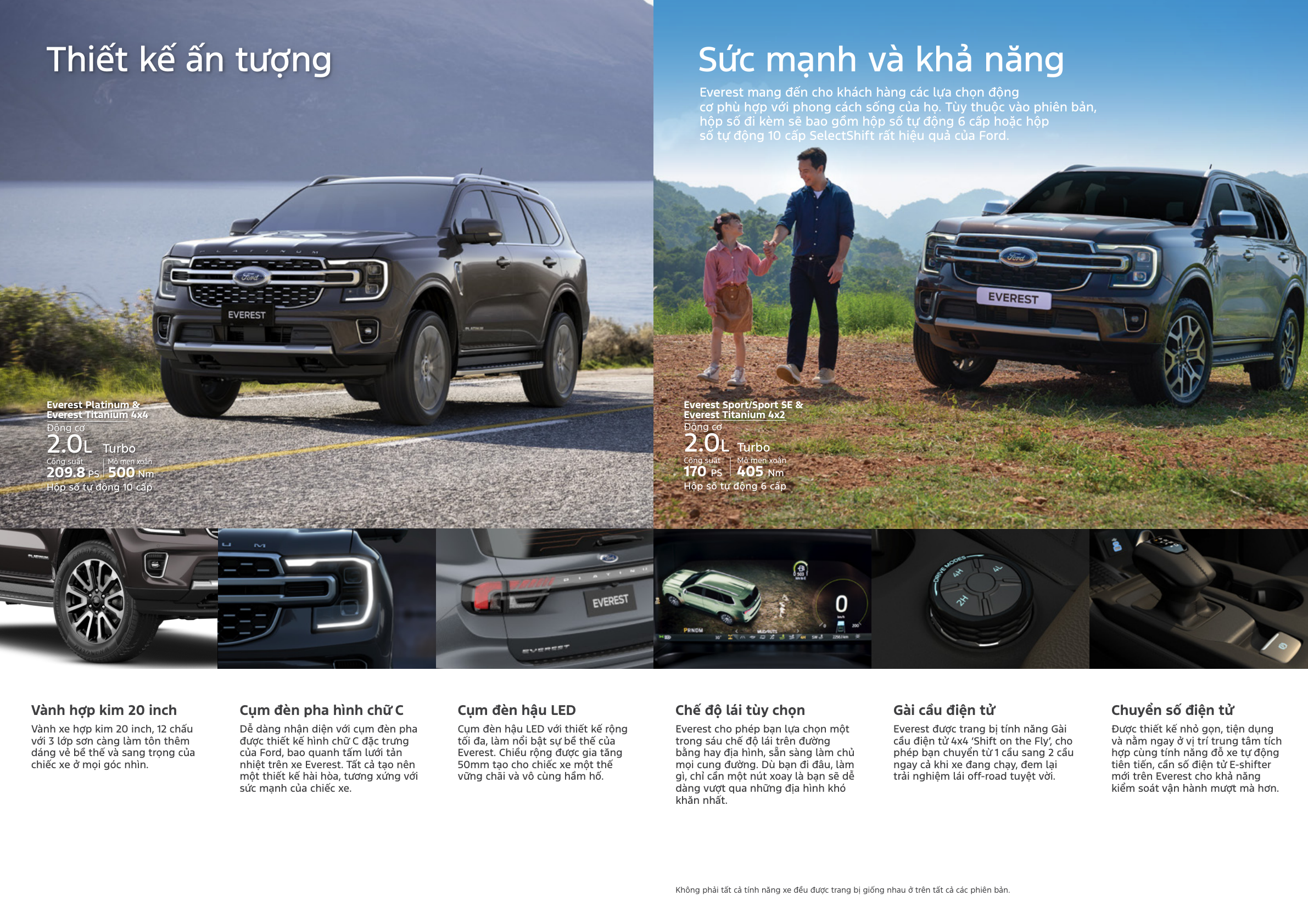 - Titanium+ 2.0L AT 4×4 – Bi-Turbo 209.8PS/500Nm, hộp số 10 cấp E-Shifter